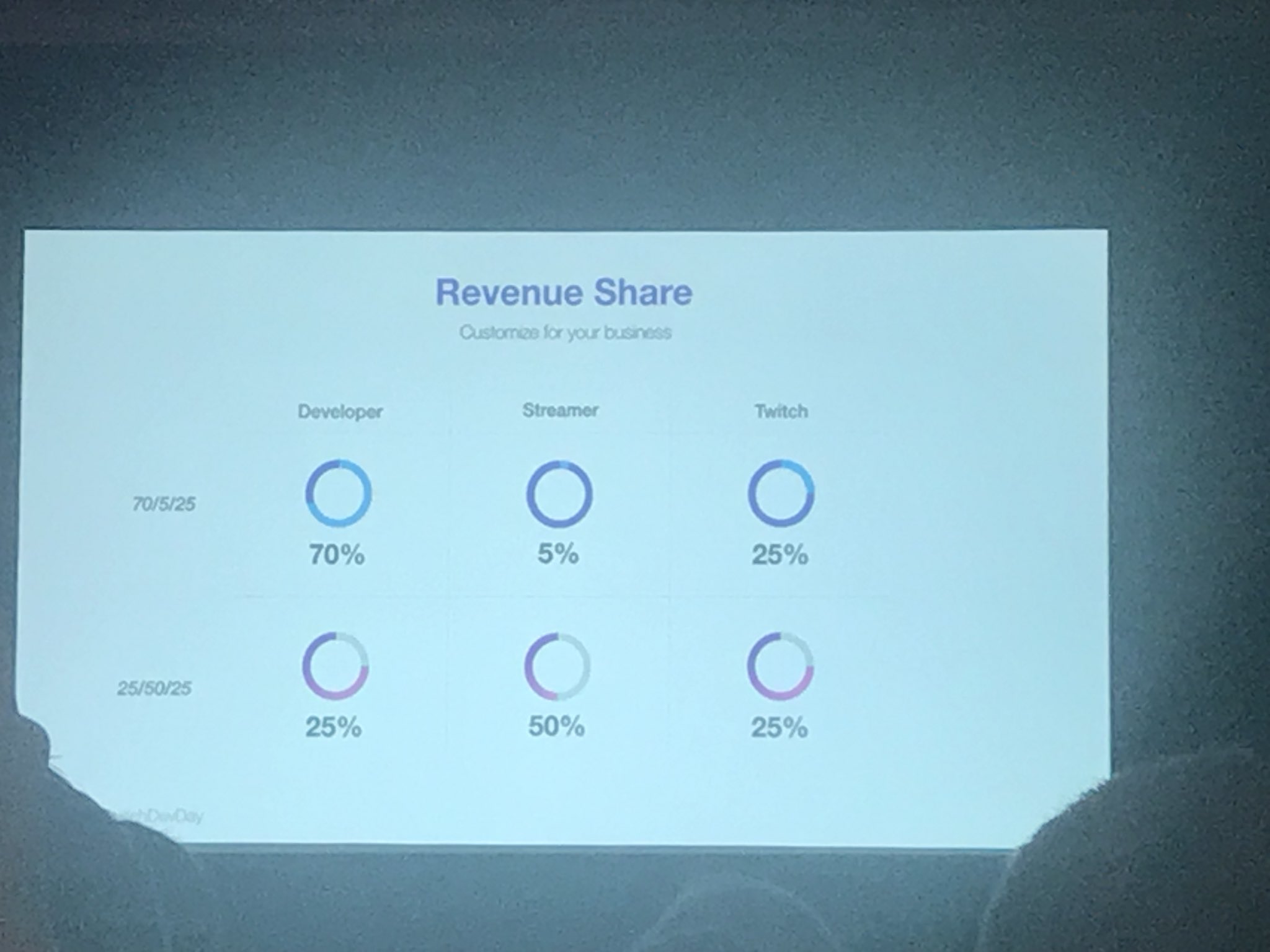 He doesn’t go into specifics of implementation but it does give an idea of what is coming, and the monetization split options (one photo I saw showed dev/streamer/Twitch split options being 70/5/25, or 25/50/25)